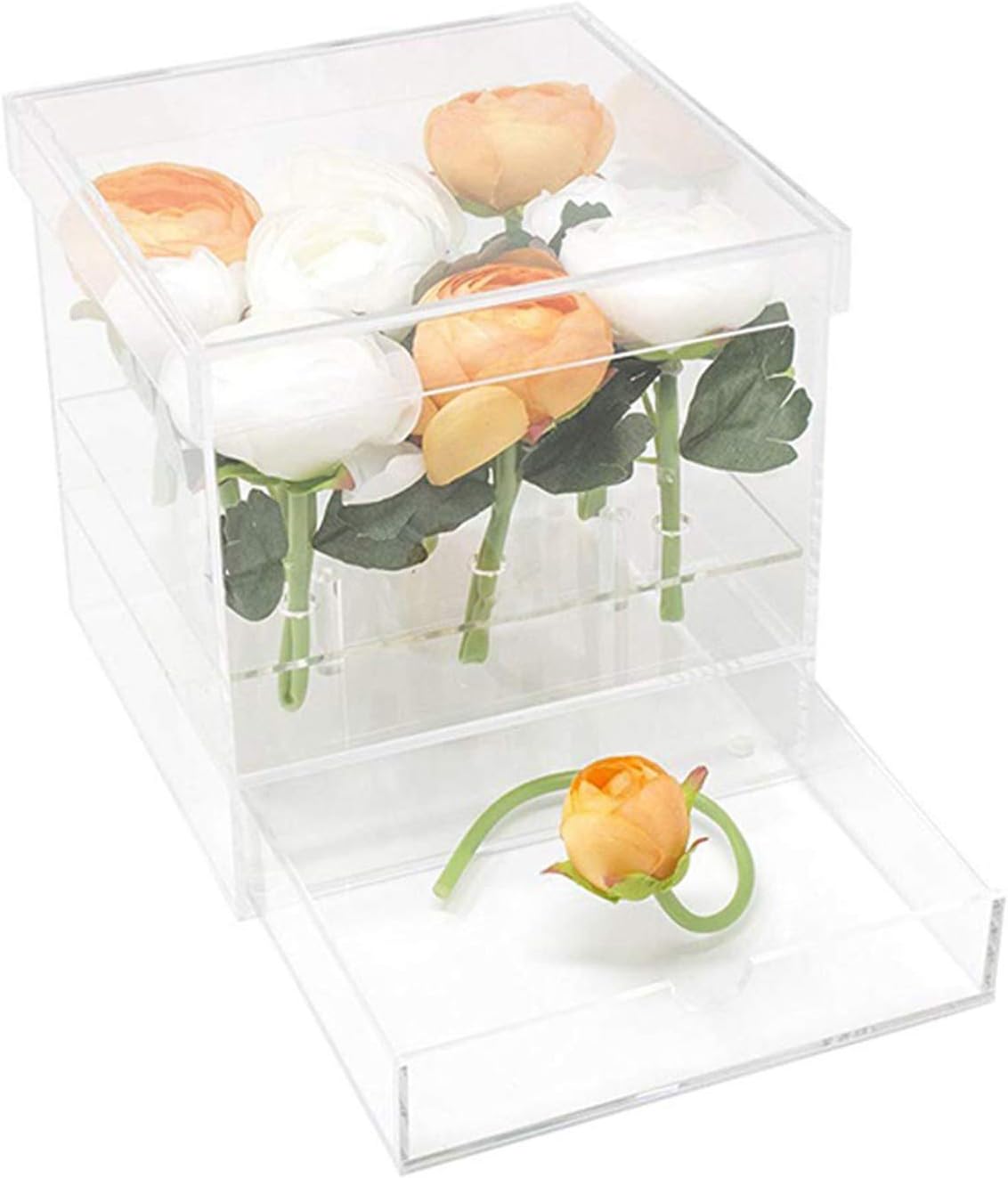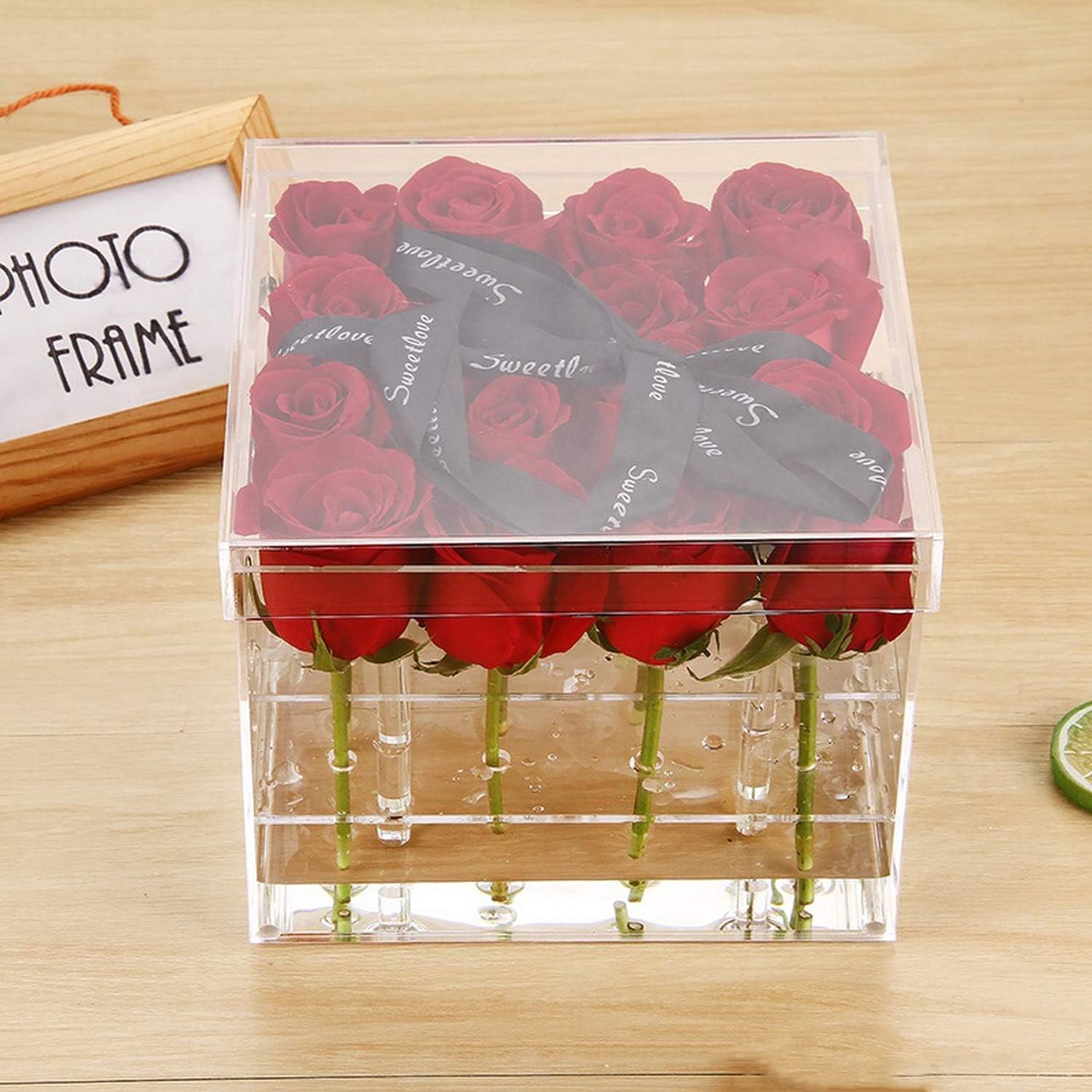 - Caja de flores de acrílico: caja de regalo de flor, 9 agujeros, tamaño con cajón: 15 x 15 x 18 cm, organizador de maquillaje: caja de maquillaje.